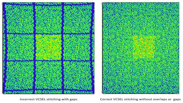 圖5.2 VCSEL構建的不良(左,有縫隙)的結構光與正確的結構光(右)
