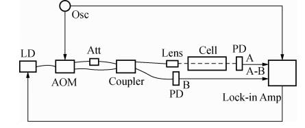 窄線寬激光器由于激光本體的原因,或者是環(huán)境擾動的原因會導(dǎo)致其輸出波長的抖動與漂移,而為了獲得窄線寬激光中心波長穩(wěn)定的輸出,一個(gè)常用的穩(wěn)頻(鎖頻)方式是氣體吸收法:如圖2.即尋找與目標(biāo)波長完全匹配的某原子或分子吸收峰,利用這種原子或分子制備氣體吸收池;把待鎖頻的激光輸出分成兩路,其信號路通過氣體吸收池,越接近目標(biāo)吸收峰則信號衰減越強(qiáng);參考路信號強(qiáng)度與信號路強(qiáng)度與參考路強(qiáng)度信號做減法運(yùn)算獲得偏離量,并據(jù)此偏離量做運(yùn)算獲得一個(gè)反饋信號給激光器控制器,通過持續(xù)的反饋操作調(diào)節(jié)并鎖定激光波長到我們選定的氣體吸收峰上。