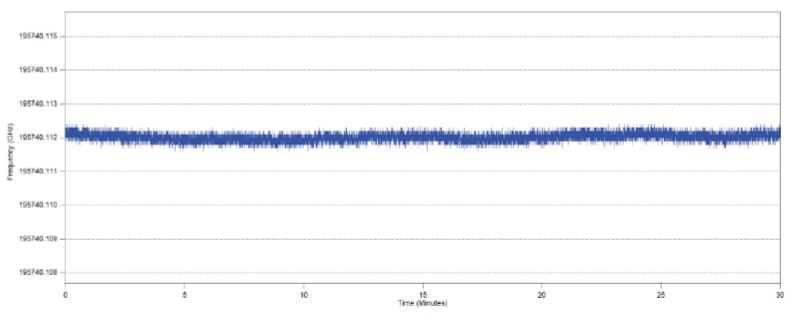 圖3. Bristol 公司872A-NIR 波長計(jì)測試1532nm 乙炔鎖頻激光器,持續(xù)測試時(shí)長30 分鐘,波長測試標(biāo)準(zhǔn)差191kHz