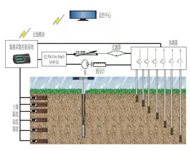 土壤碳通量測量系統結構示意圖