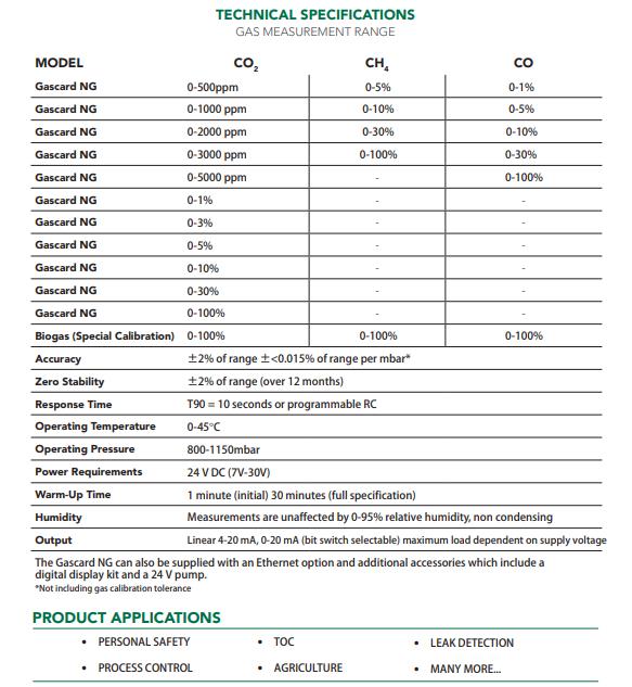 注: 其他氣體及指標均可根據要求定制