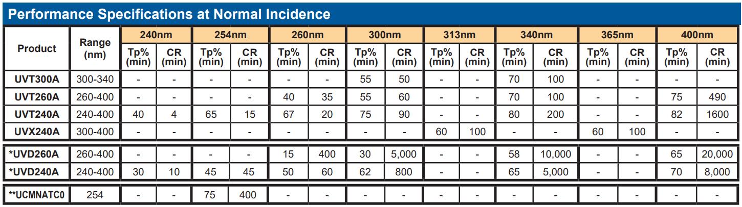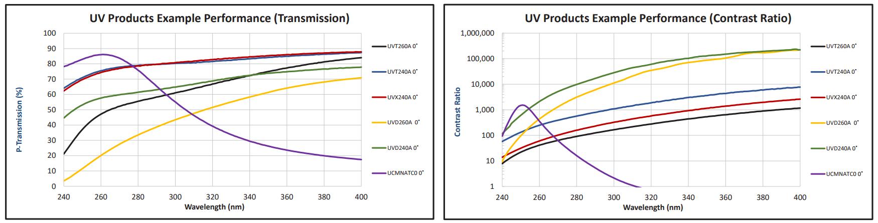 Moxtek專為240nm到400nm紫外波段應用設計紫外偏振片,采用特有的納米線柵技術,性能優(yōu)異,具有大入射角,寬波長范圍,耐熱性高,高透過率,高消光比等特點。