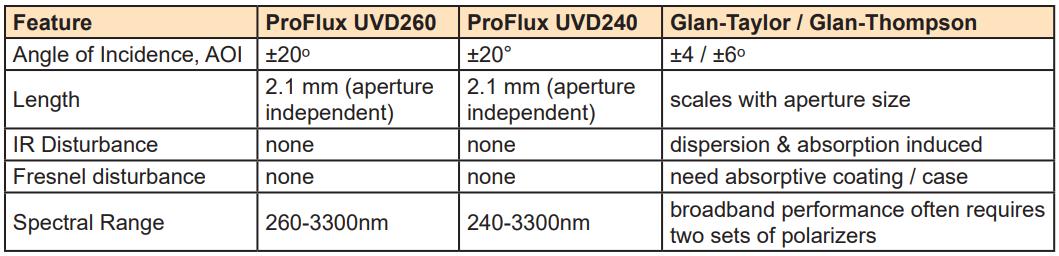 Moxtek UVD260和UVD240偏振片可用于光譜儀,與Glan-Taylor棱鏡相比,其小尺寸、寬接受角、均勻性和寬波長帶寬特點具備明顯的優(yōu)勢,另外相比傳統(tǒng)的Glan-Taylor棱鏡,UVD系列偏振片還具有更高的對比度和透過率,同時支持更大的AOI,需要更少的空間,沒有光學像差,厚度僅為2mm左右。