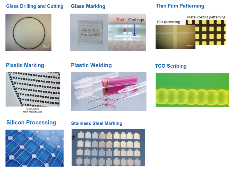 尤其是2um 波段,AdValue 提供*廣泛的產(chǎn)品,特別適合玻璃打標(biāo)與加工、塑料焊接/ 打標(biāo)、硅材料與石英材料處理等波長敏感型應(yīng)用。