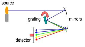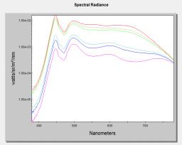 代替濾光片收集顏色數(shù)據(jù),光譜輻射計(jì)將輸入信號(hào)分解成每波長(zhǎng)的光譜,非常像棱鏡將陽(yáng)光轉(zhuǎn)換成彩虹,然后多個(gè)探測(cè)器測(cè)量衍射光譜中的每種顏色。 該“原始數(shù)據(jù)”變換成光譜輻射度值,例如w / sr / m2。根據(jù)校正后的光譜值,進(jìn)行CIE顏色計(jì)算。