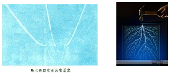 當(dāng)加上高壓后,會(huì)在電極附近產(chǎn)生空氣的局部放電——電暈放電,電壓再加高時(shí),電暈放電更加強(qiáng)烈,致使間隙內(nèi)發(fā)生刷狀放電,而后就擊穿了(電弧放電)。如棒-板間隙,在尖電極附近電場(chǎng)強(qiáng)度最大,加上高壓后,電極附近先產(chǎn)生電暈放電,而板上的電力線很疏,不會(huì)產(chǎn)生電暈。