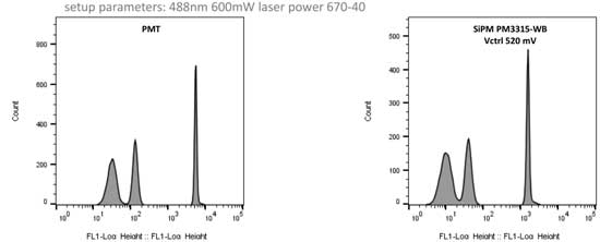 圖一:Comparison of PMT vs. SiPM TIA Module-CST beads