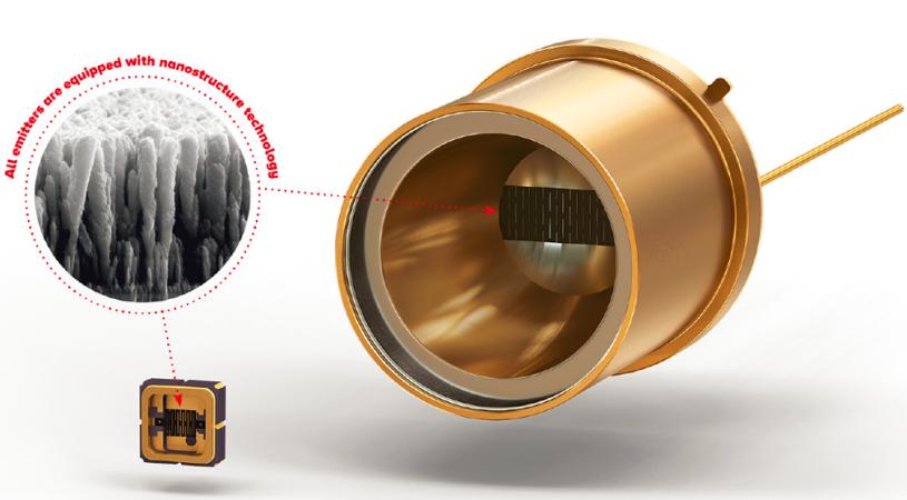 Infrasolid 的紅外輻射源是具有近黑體發射率的脈沖熱發射器。基于納米技術和由高熔點金屬制成的發射器裝置,具有納米結構發射器表面的獨立式單片輻射元件在許多應用中提供了許多優勢。為FTIR應用提高更高效的紅外光源。