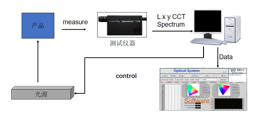 該系統是集成光譜儀、反射光源、透射光源、CCD、高精度模組、運動控制軟件為一體的自動化測試系統,應用于車載玻璃的反射率,透過率測試及獲取相應狀態下的色坐標。