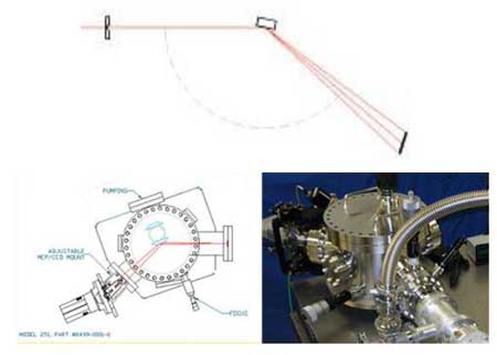 掠入射儀器的工作范圍為~1 ~ >100nm。一條狹縫穿過羅蘭圓,CCD探測器安裝在垂直于出口射線的位置,微通道板增強器與圓相切,可以沿圓掃描以截取感興趣的區域。光也源可以安裝在用于校準系統的掃描狹縫處,作為單色可調光源系統;