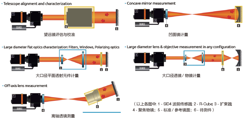 典型光學元件計量的光路可以R-Cube 和SID4 為核心靈活搭建: