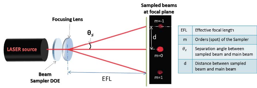 光束取樣器產(chǎn)生固定能量比率、相同光束特性的衍射光斑,可用于激光的實時測量。