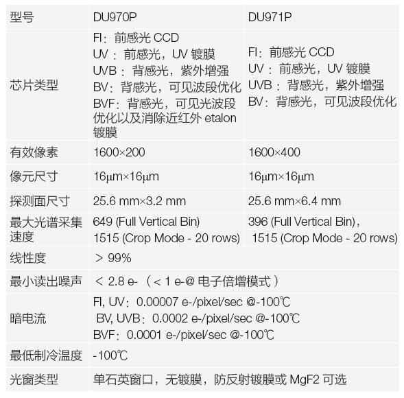 NewtonEM 系列科學(xué)級(jí)光譜EMCCD 包含DU970P 及DU971P 兩款,芯片分別為1600*200 及1600*400。同時(shí)具備EMCCD 及CCD 工作模式,在微弱光信號(hào)探測時(shí)可以實(shí)現(xiàn)1000 倍的增益,與CCD 相比可以在更短的時(shí)間內(nèi)得到相同的信噪比,尤其適合弱信號(hào)的快速采譜。芯片類型包含背感光(BV),紫外增強(qiáng),前感光等不同的選項(xiàng),來滿足不同的實(shí)驗(yàn)需求。采用真空密封技術(shù),保證了制冷溫度及耐久性。