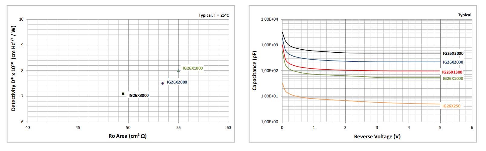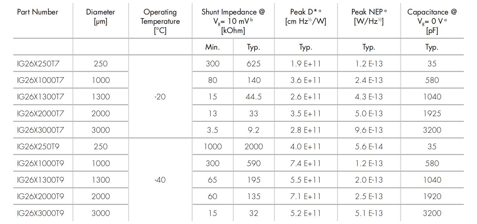IG26系列探測器是全譜段的PIN結(jié)構(gòu)的二極管,其截止波長是2.6um. 這個(gè)探測器設(shè)計(jì)用于光譜測量和輻射計(jì)量應(yīng)用。它在提供優(yōu)異的分流電阻時(shí),還可以帶來寬譜范圍內(nèi)的優(yōu)良的響應(yīng)。