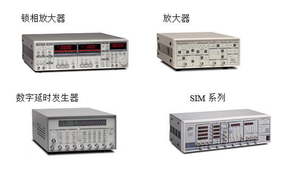 鎖相放大器(SR830,SR810,SR865等),放大器(SR560電壓前置放大器,SR570電流前置放大器等放大器),數字延時發生器(DG535,DG645):