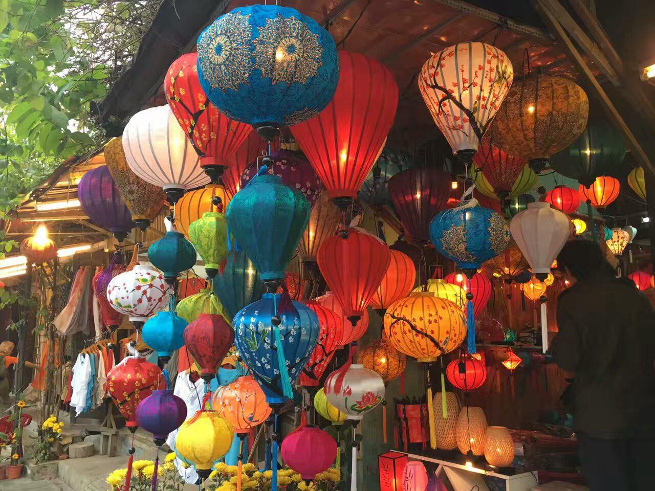 會安仿佛是一座中國古鎮(zhèn),滿街的中式會館掛著紅燈籠,到處可見的中國文字。會安給人的感覺是寧靜的,安逸的。我們在這里既能欣賞到古老的文化傳統(tǒng),又能感受到濃郁的地域氣息。燈籠是不可或缺的當(dāng)?shù)靥厣鼓唤蹬R時分,秋盆河兩岸的爭奇斗艷燈籠成為了會安*大的特色。
