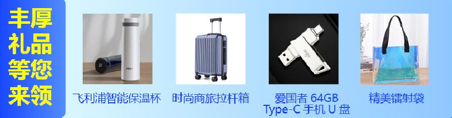 一等獎(jiǎng) 飛利浦智能保溫杯或時(shí)尚商旅拉桿箱 50名