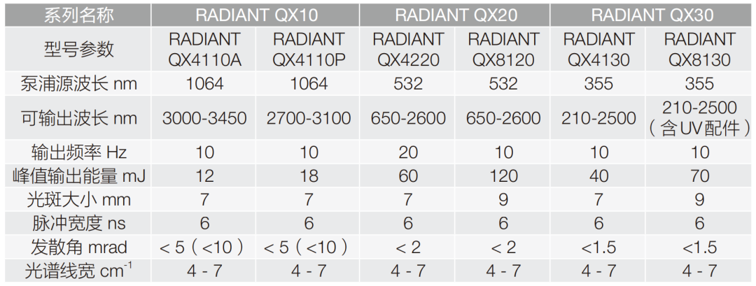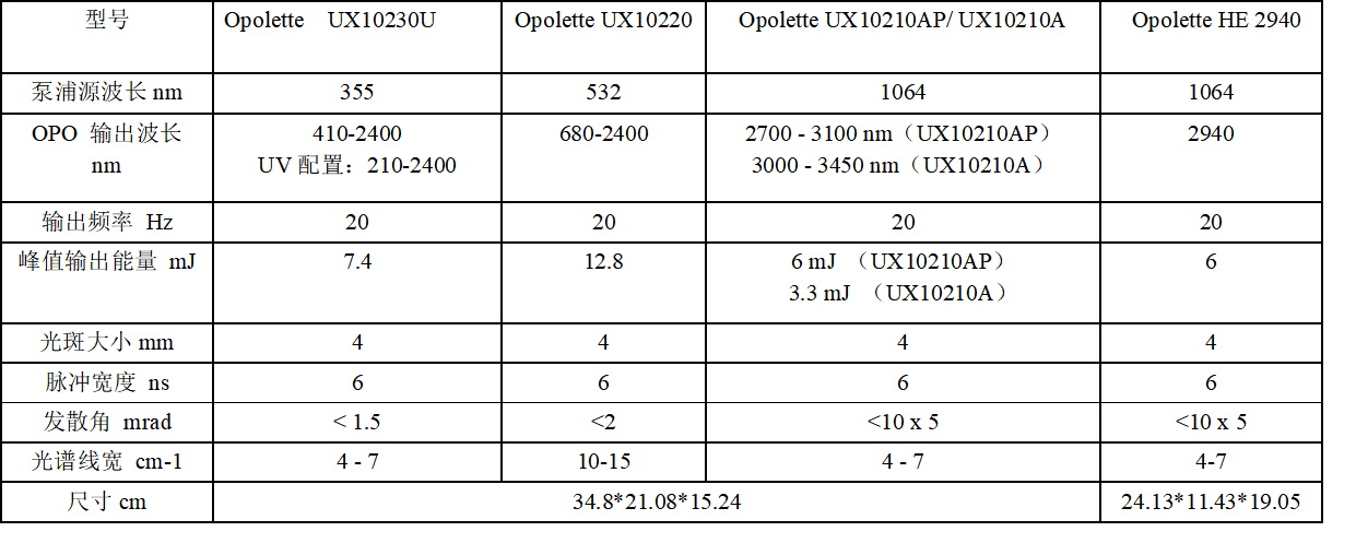 OPOTEK 公司持有傘形OPO、環形OPO的**。其Radiant系列和Opolette系列采用II類位相匹配,具備較小的發散角和相對較窄的線寬,波長可覆蓋紫外 ~ 中紅外;而 PHOCUS 系列則針對光聲應用,采用 I 類位相匹配,提供較高的近紅外轉換效率。